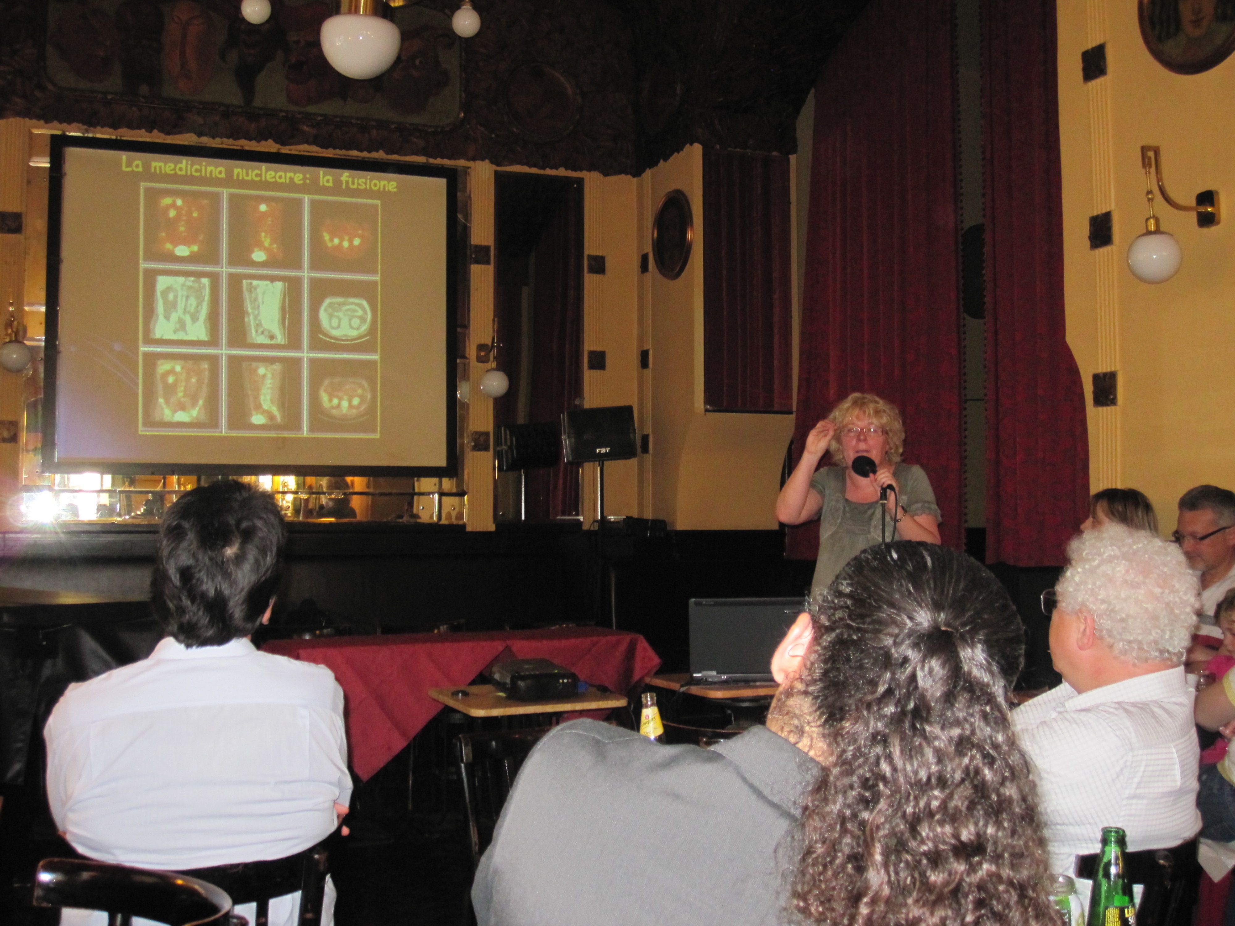 Il pubblico, che anche questa volta ha risposto numeroso all’invito, malgrado la giornata afosa invitasse a ben altri programmi, ha potuto di conseguenza avvicinarsi ai concetti spesso ostici di dose, dose equivalente e dose efficace, nonché comprendere che la stessa dose assorbita ha diversi effetti sul corpo umano, a seconda del tipo di radiazione e dell’organo esposto. Sono stati esaminati i diversi effetti delle radiazioni ionizzanti sull’organismo, quelli deterministici (che si verificano con certezza oltre la soglia di 1 sievert di dose assorbita e la cui gravità aumenta con l’aumentare della dose assorbita) e quelli stocastici (la cui probabilità di verificarsi aumenta all’aumentare della dose assorbita, ma senza una soglia minima di sicurezza), e si sono fatti alcuni esempi della dose di radioattività naturale assorbita comunemente dalla popolazione mondiale, a tal proposito mostrando come questa sia fortemente variabile da paese a paese (inalcune zone del Brasile è quattro volte superiore alla media mondiale, senza che per questo sia stata dimostrata alcuna particolare incidenza di malattie radioindotte).