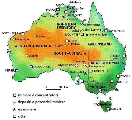 L’uranio in Australia viene estratto dal 1954. Laggiù le risorse di uranio ad oggi note sono le più grandi al mondo – il 31% del totale mondiale; ma l’Australia è “solo” il terzo produttore al mondo, dietro il Kazakistan ed il Canada, e tutta la produzione viene esportata.