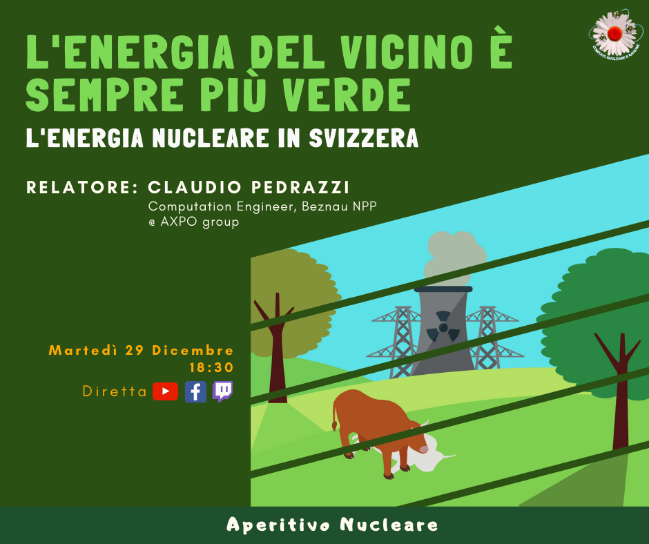 Pascoli, montagne e … Uranio? I nostri vicini di casa svizzeri producono quasi un terzo della loro energia sfruttando la fissione! Parleremo della storia del nucleare in Svizzera, delle bollette e della strategia energetica 2050 nel nostro prossimo Aperitivo Nucleare con l’ing. Pedrazzi.
