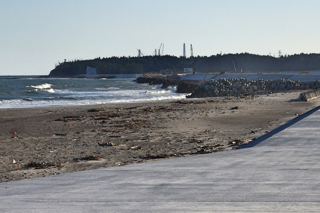 Dallo stesso punto di osservazione, guardando verso sud, la centrale nucleare di Fukushima Dai-ichi è a