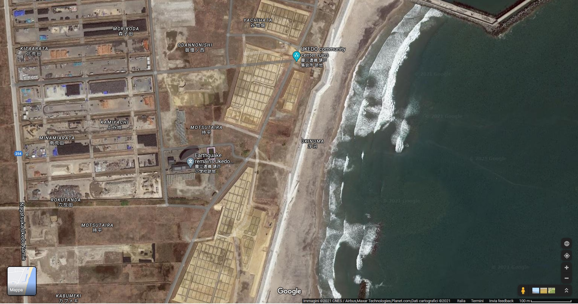 Foto satellitare dell’area di Ukedo oggi. https://www.google.com/maps/place/Ukedo,+Namie,