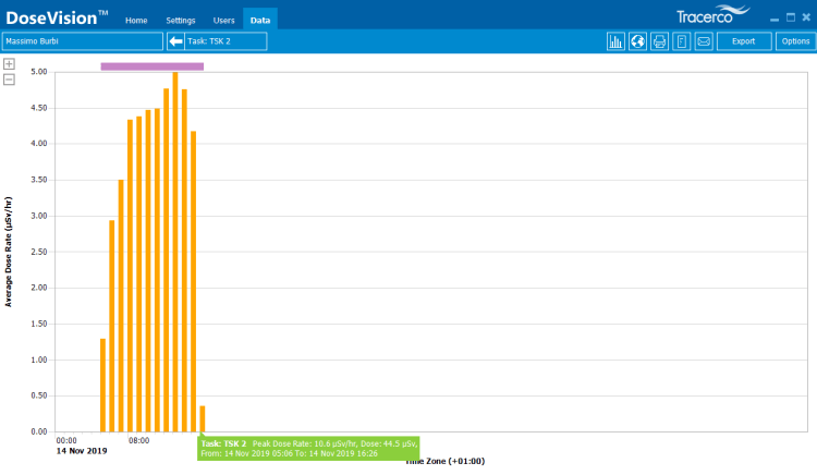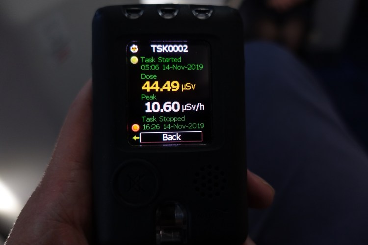 Il dosimetro se l’è cavata meglio, rilevando un reteo di dose di 4-5 μSv/h (con picchi di 10 μSv/h) e accumulando una dose di 44 μSv nel corso di undici ore, inclusi decollo e atterraggio.
