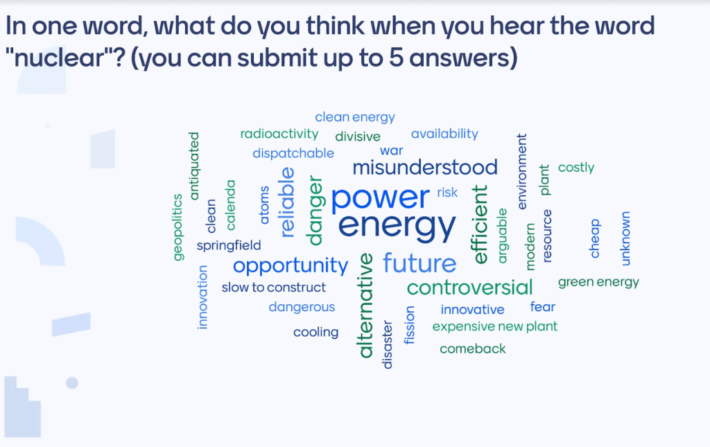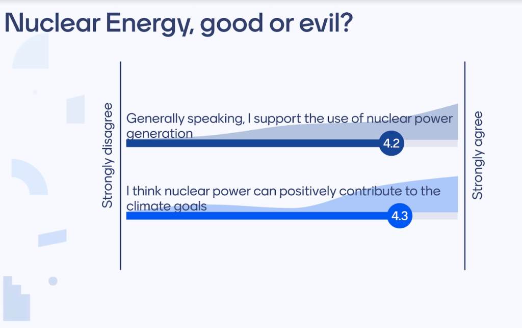 Per rompere il ghiaccio all’inizio dell’evento è stato fatto un mini sondaggio che ha rivelato dei risultati abbastanza inaspettati, mostrando che i partecipanti, tutti giovani studenti internazionali all’Università Bocconi, erano a favore dell’uso civile dell’energia nucleare (i risultati nelle due figure successive).