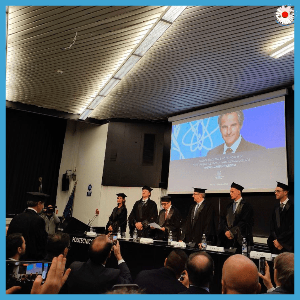Oggi siamo quindi orgogliosi di collegare questa nostra storia alla figura di Rafael Mariano Grossi e di averlo come nostro alunnus Ingegnere Nucleare. Egli avrà l’opportunità di rappresentare, d’ora in poi, anche il Poli nella sua futura attività di promozione ai più alti livelli possibili del ruolo e dei valori associati all’ingegneria nucleare.