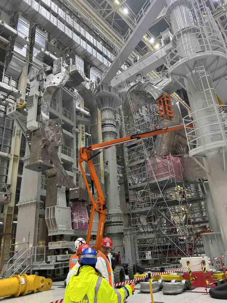 Il tour è proseguito con la visita agli assembly hall, che al momento rappresentano il cuore pulsante dell’esperimento: qui i componenti fondamentali della macchina, come i magneti toroidali, il thermal shield e i settori del vacuum vessel vengono testati, controllati e assemblati per essere poi trasportati nel pit, il pozzo dove allogerá il tokamak una volta interamente assemblato.