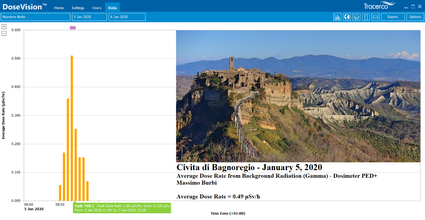 L’erosione della collina e l’inesorabile spopolamento le sono valsi l’appellativo di “città che muore” [1]. Gli abitanti rimasti sono solo una decina, ma le centinaia di migliaia di turisti che la visitano ogni anno possono renderla piuttosto affollata [2]. Quasi nessuno di loro sa che questo luogo fiabesco è anche uno dei posti più radioattivi d’Italia con ratei di dose da radiazione gamma tra 0.40 e 0.50 μSv/h, circa sei volte il fondo ambientale medio italiano [3].