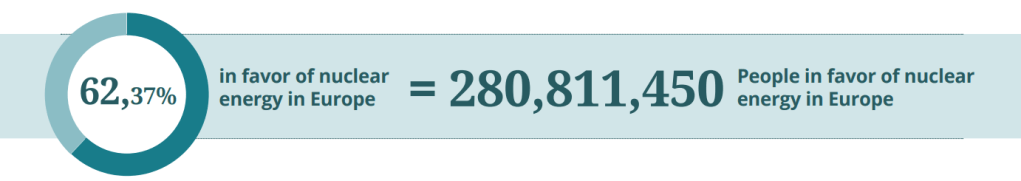 [1] il 62.37% della popolazione dell’Unione è favorevole a proseguire nello sfruttamento dell’energia nucleare.