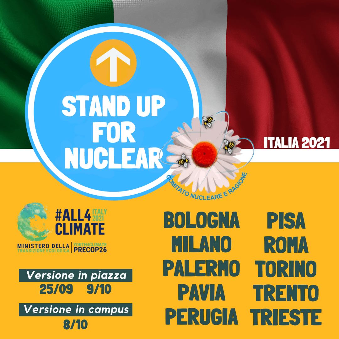 Il nucleare è indispensabile per coniugare il progresso umano alla cura dell’ambiente. PDF del comunicato stampa scaricabile qui. “Stand Up for Nuclear” è un mese di mobilitazione nelle piazze di tutto il mondo (in Italia: Torino, Milano, Trento, Trieste, Roma e Palermo) per sottolineare l’importanza dell’energia nucleare come fonte energetica affidabile e pulita, in gradoContinua a leggere “– COMUNICATO STAMPA – Manifestazioni in tutto il mondo in favore dell’energia e delle tecnologie nucleari: in Italia il 27 settembre”