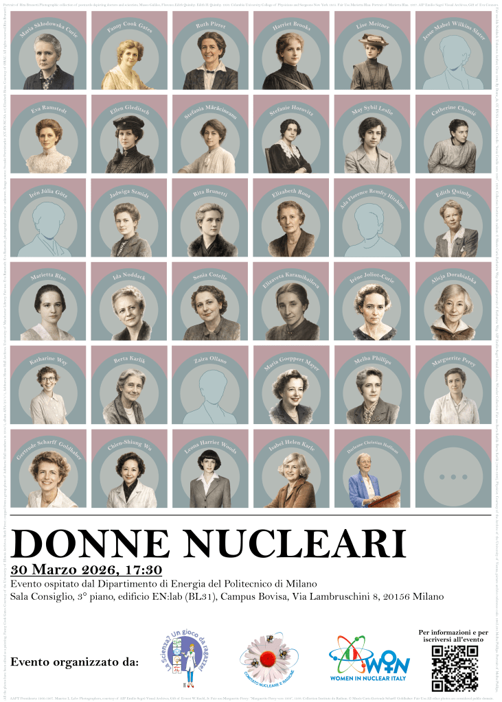Il Comitato Nucleare e Ragione, Women in Nuclear – Italy e Women in STEM organizzano un ciclo di conferenze dedicato alle donne che hanno dato il loro contributo, come scienziate, allo studio della radioattività, della fisica e della chimica nucleare.
