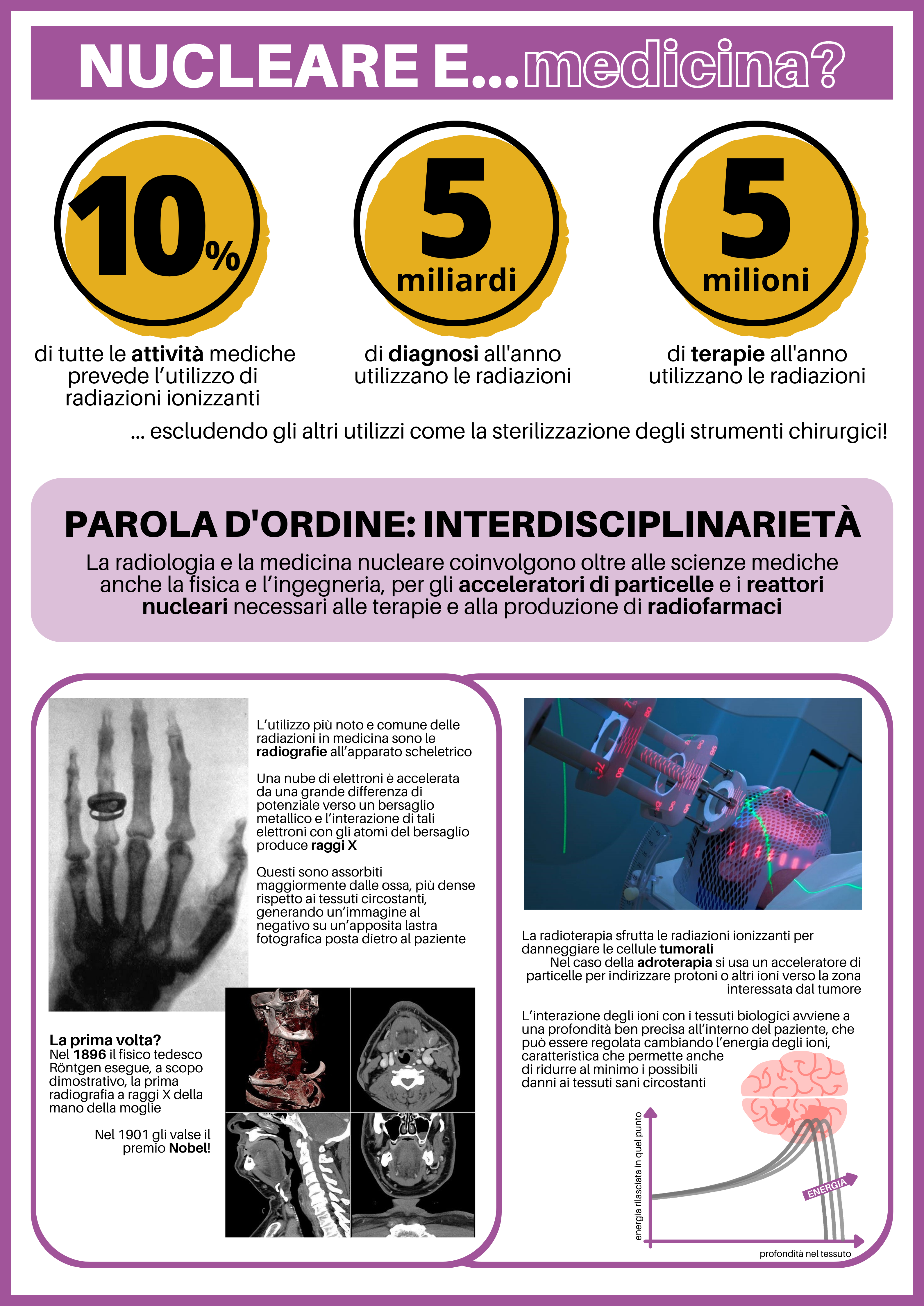 La radioattività è un fenomeno da sempre poco affrontato dalla divulgazione scientifica, sul quale si innestano troppo spesso errati timori irrazionali. Il laboratorio si propone di fornire una mappa dei fenomeni legati alle radiazioni ionizzanti, e una bussola per orientarsi in questo mondo poco conosciuto. Comprendere la radioattività – come raggi X e gamma, particelle alfa o elettroni- aiuta infatti a capire la realtà che ci circonda: dai raggi cosmici alle viscere della Terra, dalle centrali nucleari agli ospedali, passando per le radiazioni che trasformano Bruce Banner in Hulk, per arrivare al nostro corpo. Capirete come la radioattività sia un fenomeno naturale che l’uomo può comprendere e governare, e avrete la possibilità di fare vostri due principali strumenti del metodo scientifico: osservazione ed esperimento. Affronterete un percorso che prenderà le mosse dai principi fisici che governano l’infinitamente piccolo – atomi e nuclei – e che vi condurrà nella comprensione di come la radioattività sia centrale in applicazioni tecnologiche di grande impatto per la nostra società e la nostra salute: radioterapia e medicina nucleare, dunque, ma non solo! Energia da fissione e fusione, indagini non distruttive di opere d’arte, sterilizzazione e acceleratori di particelle, sono applicazioni utili e diffusi del fenomeno, che verrà così spogliato da ogni sinistro pregiudizio.