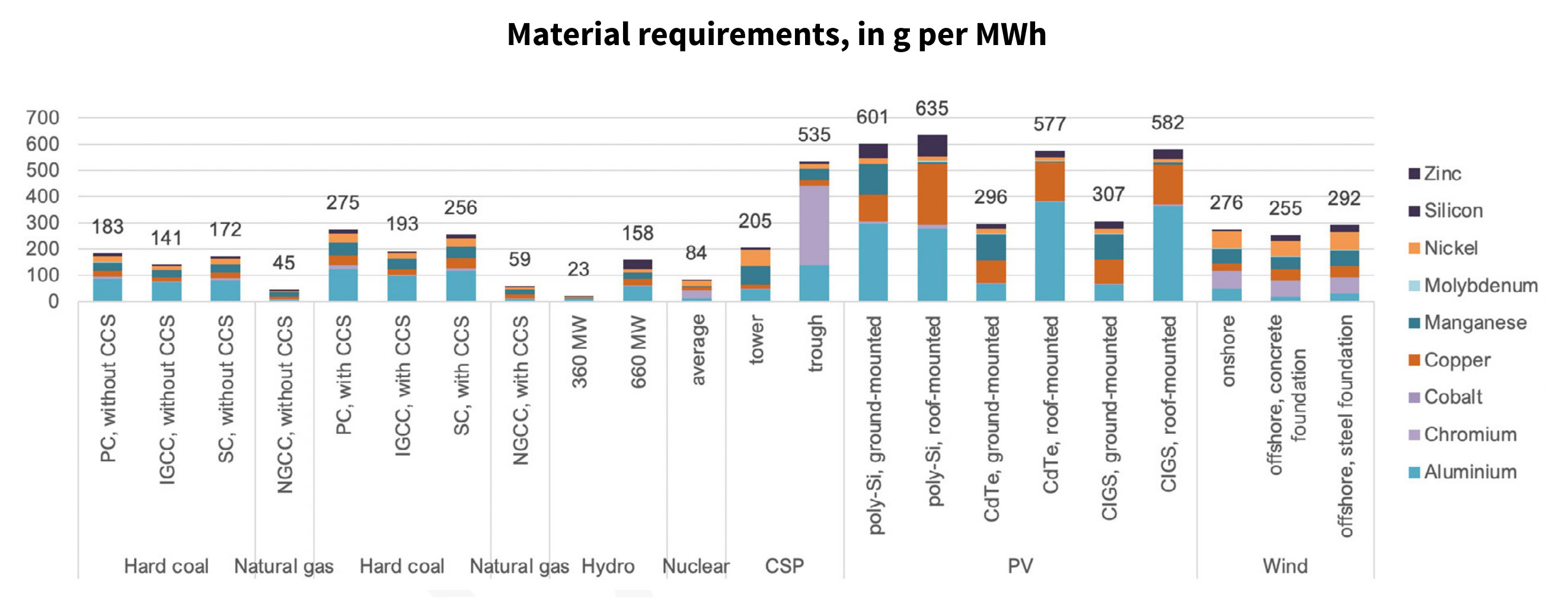 Questo aspetto è ulteriormente rafforzato se ci si concentra sui cosiddetti minerali critici, così come definiti dall’Agenzia Internazionale dell’Energia (IEA) [11]. Come si evince dalla Figura 7, estratta dal già citato report UNECE, nucleare, gas e idroelettrico di media e piccola taglia sono gli impianti che riscontrano i valori migliori.