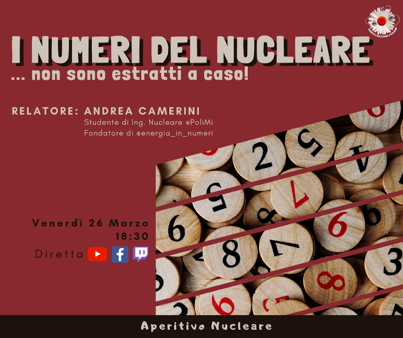 Questo venerdì 26 Marzo alle 18.30 il nostro socio Andrea Camerini, studente di Nuclear Engineering, nel nostro Aperitivo Nucleare ci parlerà di numeri! Abbiamo spesso parlato dei tanti aspetti peculiari della fissione nucleare, ed è arrivato il momento di snocciolare qualche numero che possa rendere bene la differenza tra questa e le altre forme diContinua a leggere “Aperitivo Nucleare: i numeri del nucleare”