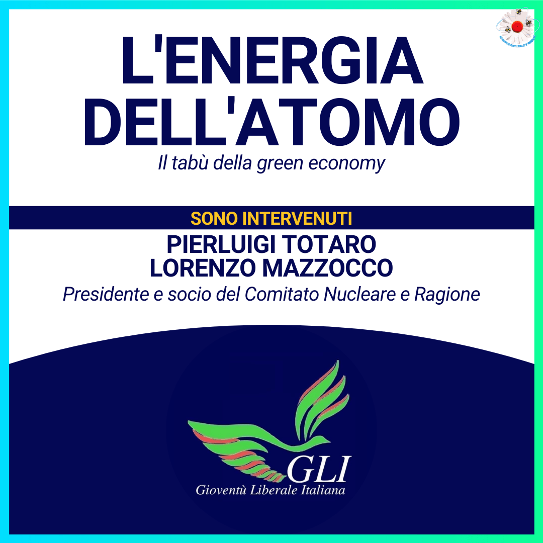 Martedì 11 Maggio alle 21:00 siamo stati ospiti per una diretta di Gioventù Liberale Italiana, che ringraziamo per l’invito! I nostri Pierluigi Totaro e Lorenzo Mazzocco hanno parlato di politica e storia del nucleare, degli scenari futuri e della situazione italiana. Ve la siete persa? Nessun problema, ecco i link!
